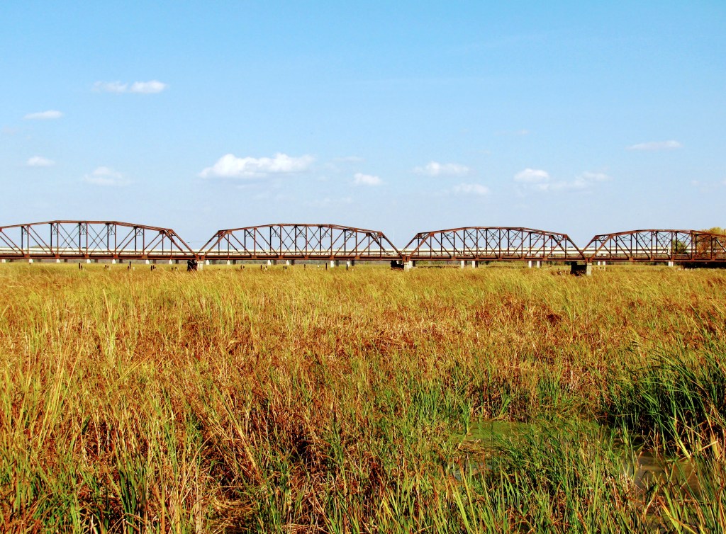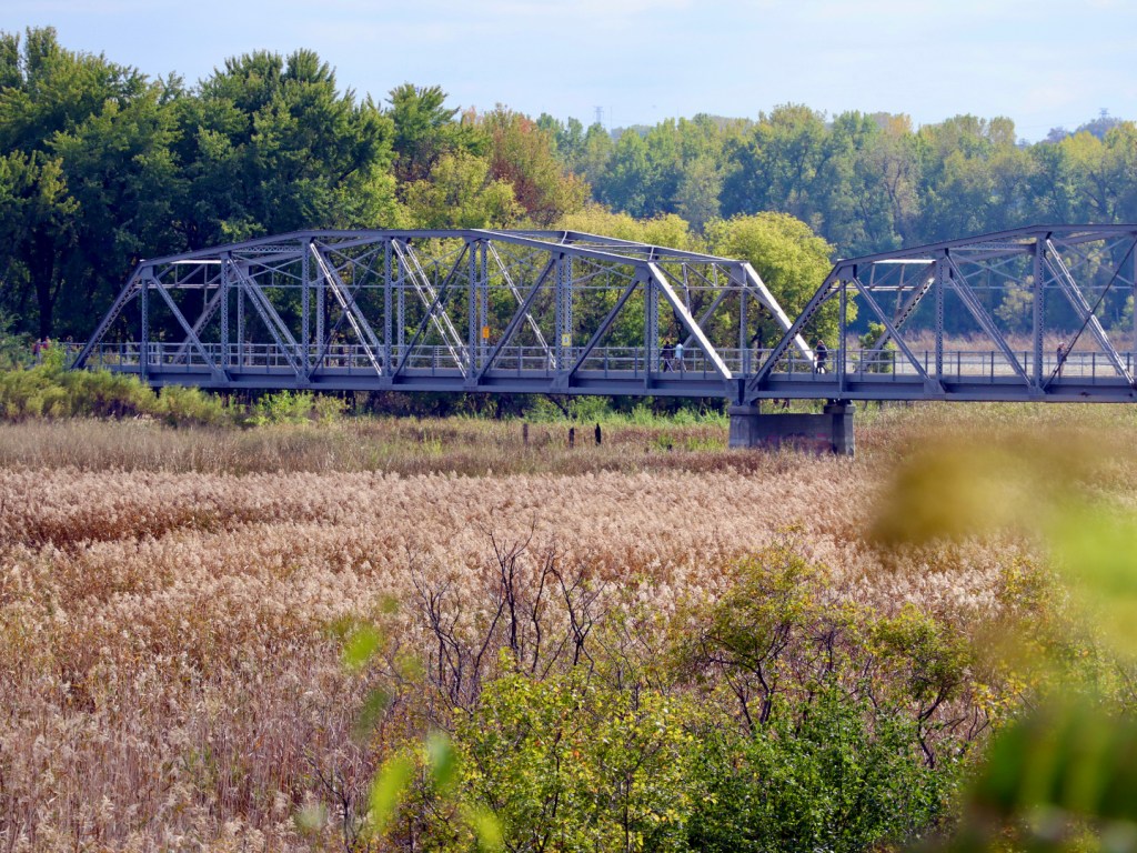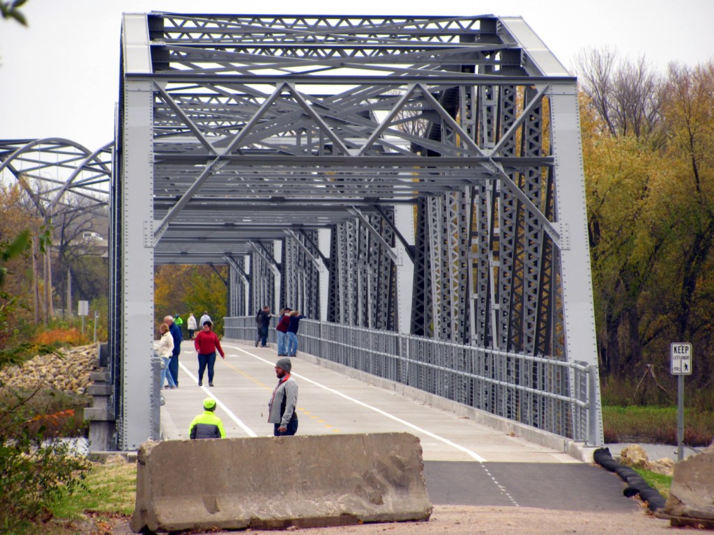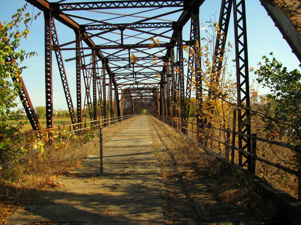 On my first visit to Old Cedar Bridge wetland (October 2011) just south of Minneapolis, the bridge was pretty much made of rust. The decking was not reliably there (3rd photo is looking through the decking to the wetland below).