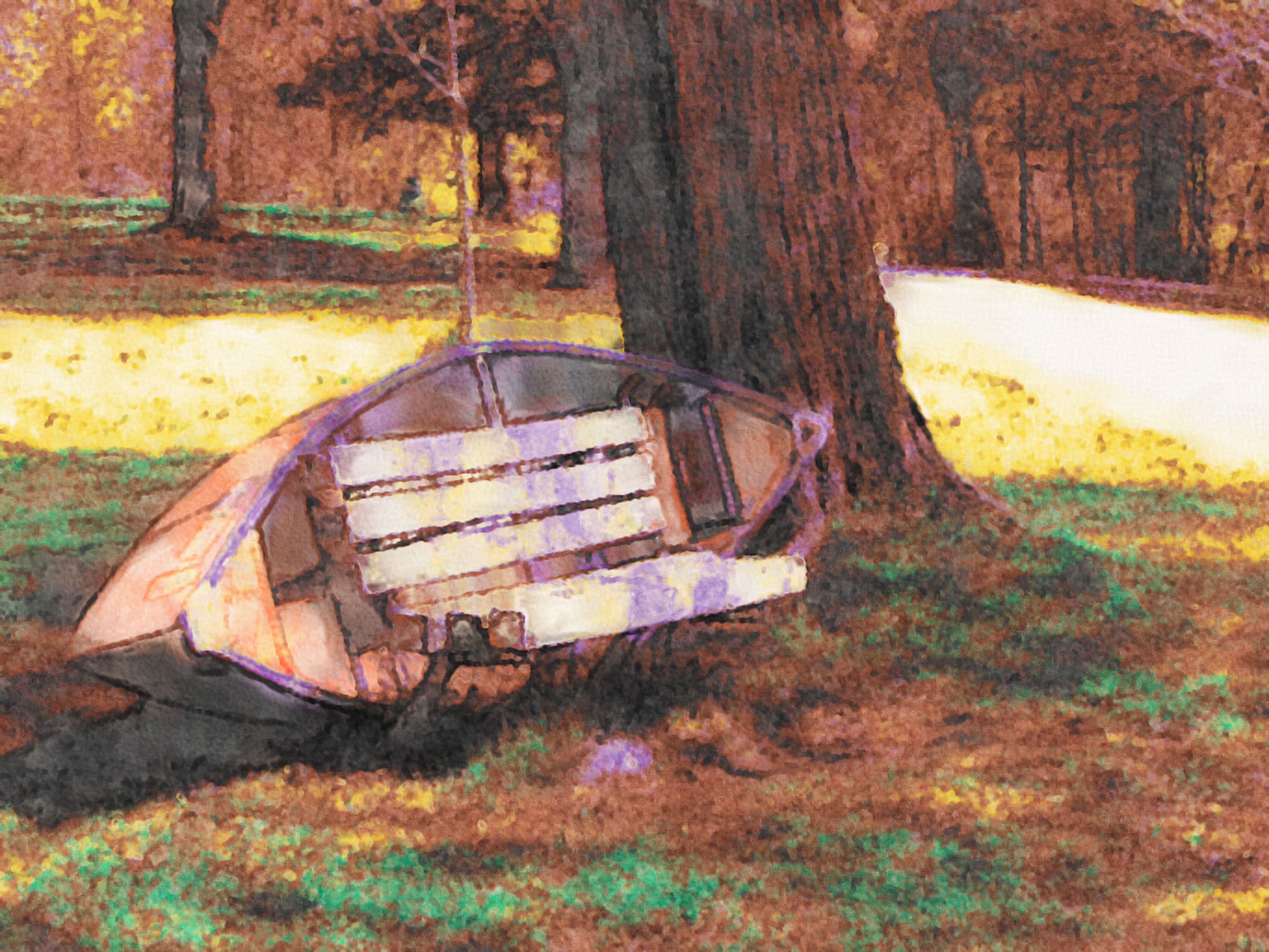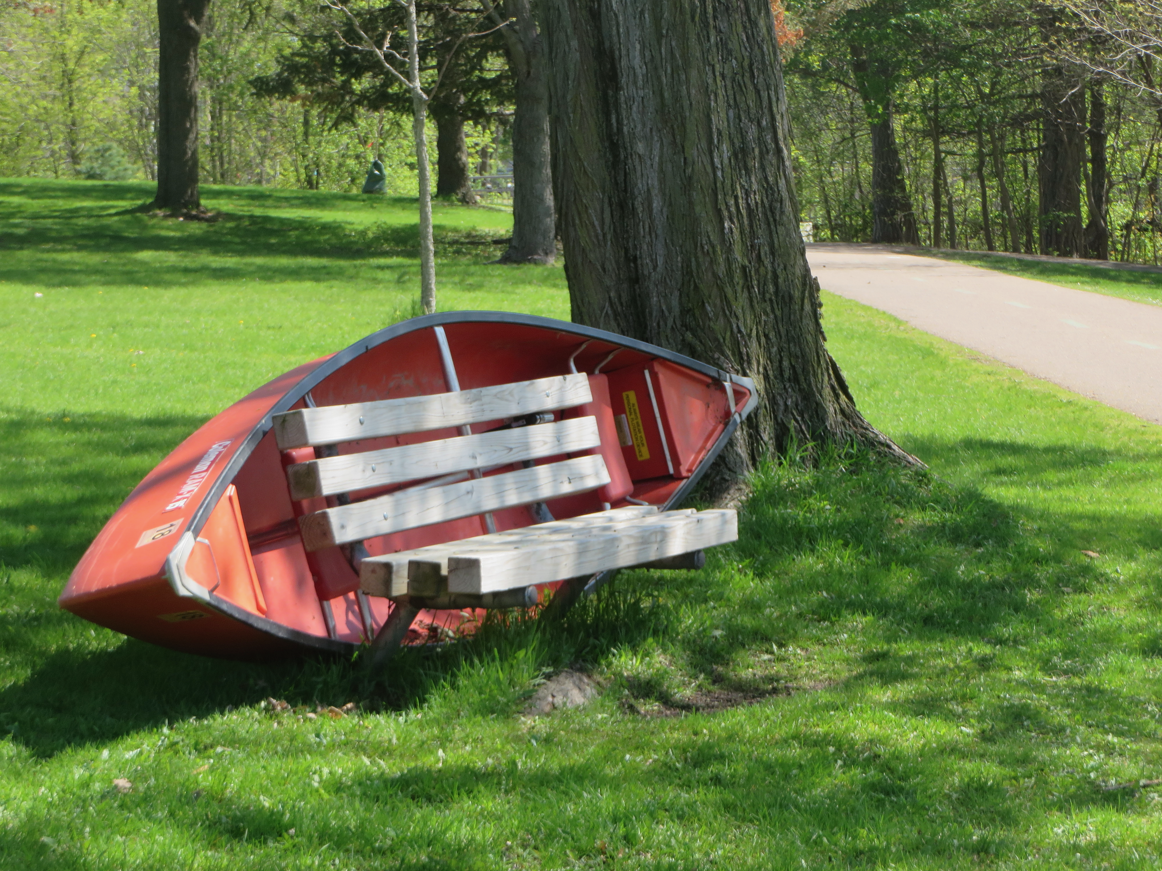 Very seldom is the picture I saw the picture I took. And it doesn’t matter how well the picture, the photo turned out. For example, I came across this canoe “hidden” behind a park bench. I was blown away by the quirkiness of what I saw, but the photo is just of a canoe behind a park bench. So I had to give it a little extra zest.